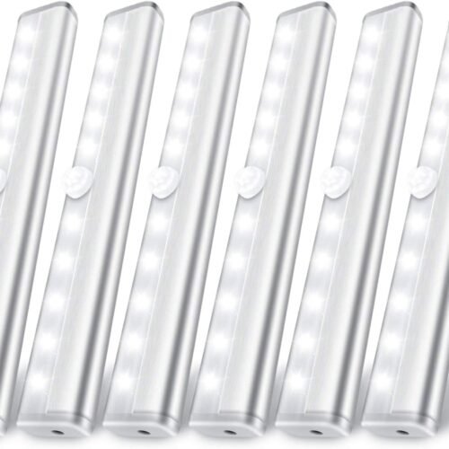 6 Pack Motion Sensor Lights, 10 Closet Battery Operated Lights, Stick-On Anywhere Magnetic Night Light Bar, Safe Light Indoor for Closet Stairs Wardrobe