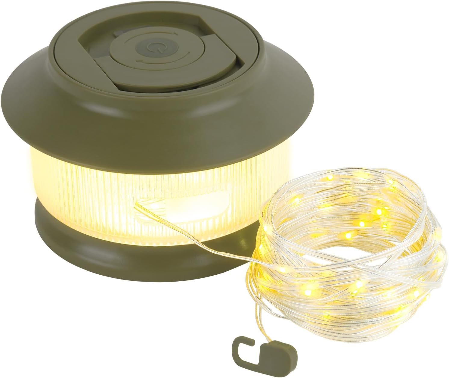 - ??All-in-1 Retractable Camping string lights&lamp??: This all-in-one camping lights string combines lights string, camper lamp,work light in one portable light. It can be used as a rechargeable outdoor string lights, camping lighting and lamp. The foldable handle can be hanged on tents or trees??ideal for hands-free lighting.The better camper string lights for your hiking,camping,indoor&outdoor decoration