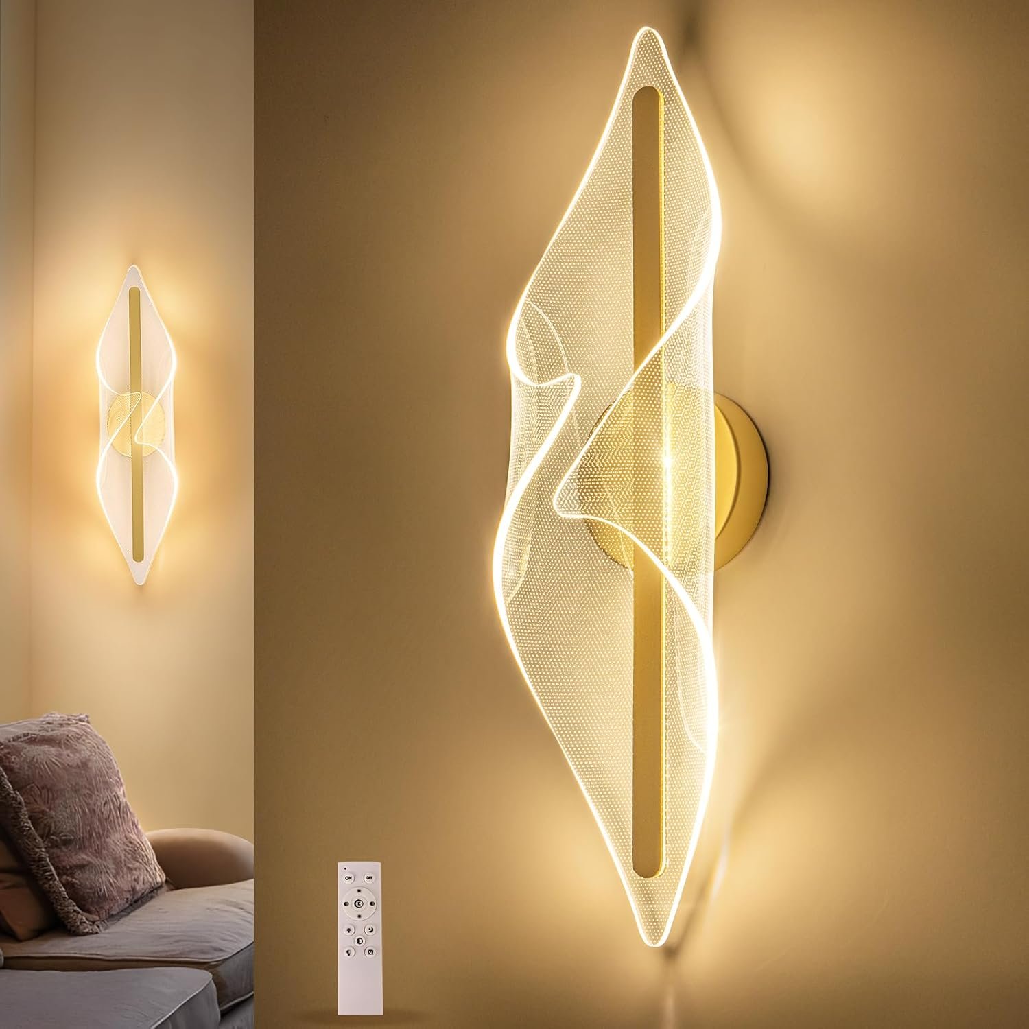 Modern Gold Wall Sconce 17.3Inch LED Wall Lamp with Remote Control Dimmable Acrylic Vanity Light for Living Room Hallway Bathroom Bedroom Stairs