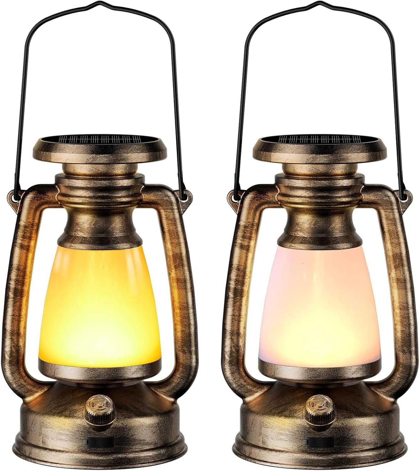 Pack of 2 Retro Solar Powered Rechargeable Camping Lantern 3 Colour Adjustable Brightness for Outdoor Adventures