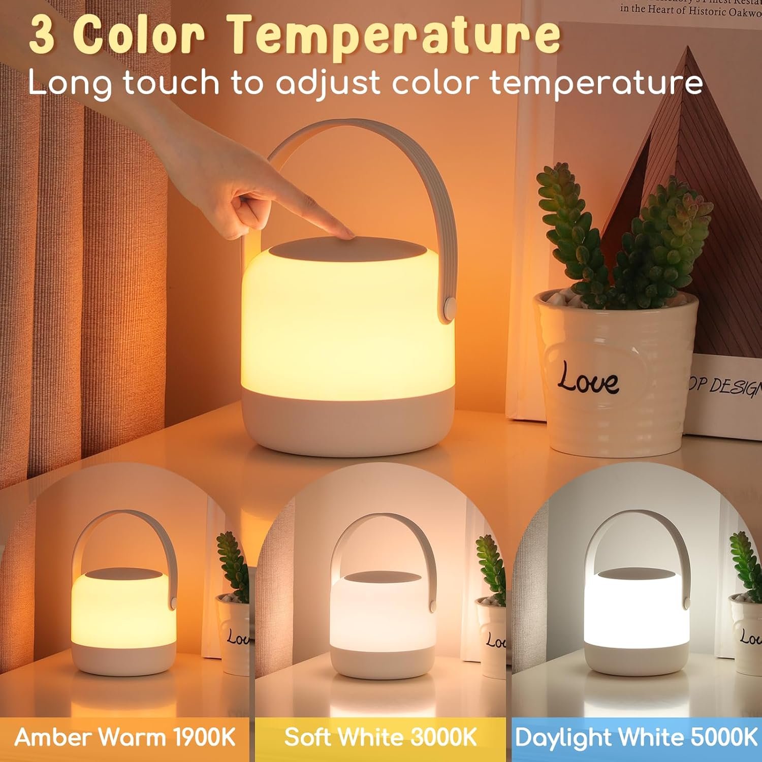 Portable Night Light, 3 Color BPA Free Nursery Cordless Touch Table Lamp gift for Baby, Kids and Adults, Timer Rechargeable Dimmable Mini Light for Breastfeeding, Newborn and Toddlers Bedrooms