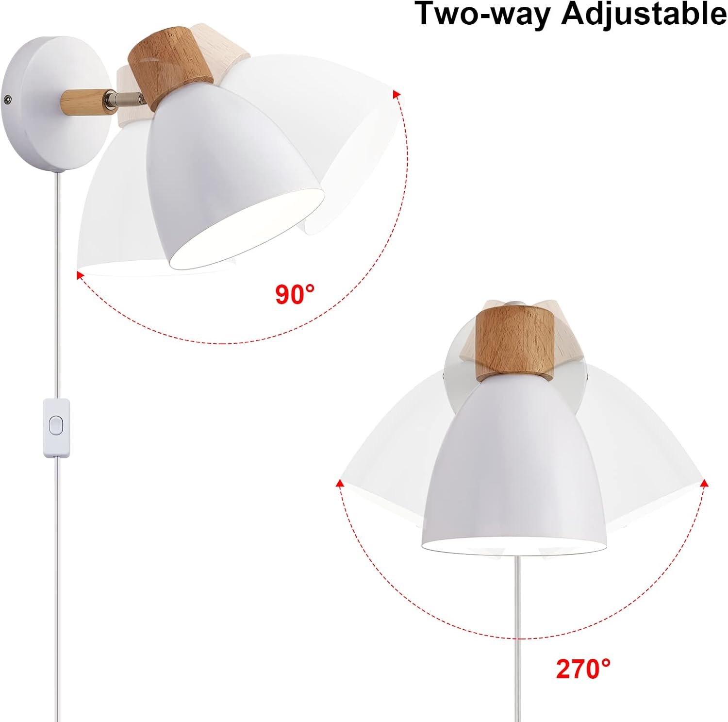 - ??Easy to Install??Only two steps are required to complete the installation (with English installation instructions), you can easily complete the installation by yourself, with good quality Wall lights with 6.6ft plug in cord, you can plug it into the wall outlet, no complicated installation required. Or you can hardwired mounting, fit US standard junction box, Both installation methods include all installation parts.